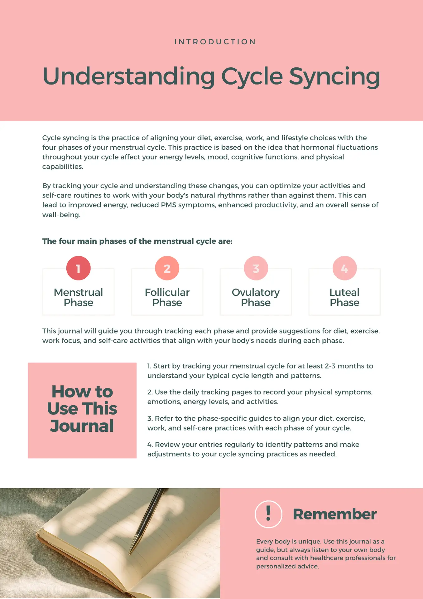 A beautifully guided, 44-page journal designed to help you understand your menstrual cycle and live in greater alignment with your natural rhythms.